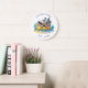 Pretty Christmas clock with a pretty watercolor log cabin and pine trees.