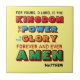 Modern colourful personalised Christian ceramic tile with inspirational quote based on an extract from the LORD'S PRAYER, namely: YOURS, O LORD, IS THE KINGDOM, THE POWER AND THE GLORY FOREVER AND EVER AMEN (from Matthew 6) in bright colours. The placeholder name is CUSTOMIZABLE, so you can personalise it with your name or other text. This would make a great gift for Birthdays, Christmas or for any occasion throughout the year.