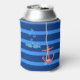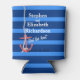 A nautical theme can cooler that can easily be personalised for weddings, engagements, anniversaries or any event that calls for remembering. The coral anchor and blue stripes are part of the design but the background colour, text colour and style can be customised to coordinate with an individual colour scheme. Easy to personalise for any event. Design by Night Owl's Menagerie, 2015.