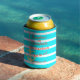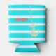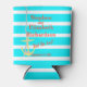 A nautical theme can cooler that can easily be personalised for weddings, engagements, anniversaries or any event that calls for remembering. The yellow anchor and aqua stripes are part of the design but the background colour, text colour and style can be customised to coordinate with an individual colour scheme. Easy to personalise for any event. Design by Night Owl's Menagerie, 2015.