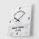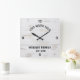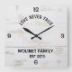 Create a personalised family wall clock featuring a the words "Love Never Fails" with a rustic, country wood plank design The sample is shown in the 10.75-inch square on the ordering page.