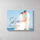 Personalised Love Wedding Portrait. Romantic script font, your wedding photo make this a perfect way to remember your amazing wedding day.Take your special wedding day photograph and add it to this wrapped stretched canvas to turn it into a piece of artwork as a wedding memory keepsake you will always cherish. Add your bride and groom names and your wedding date. Replace the sample photo with your own to create your own special wall art. A wonderful gift for newly weds. The word "Love" in a sophisticated script font can me moved anywhere on the canvas to suit your picture using the customisation edit options. Select from a wide variety of standard sizes or create your own size in landscape or portrait. For other colours, please contact luxuryweddinginvitations@gmail.com
