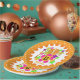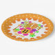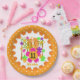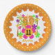 Personalised Luau 11th Birthday paper plates are colourful, fun, cheery, and a perfect addition to any luau or tropical theme birthday party celebration! Features a pair of flip flops, palm trees, flowers, the number 11 for 11th birthday, a border of white dots on orange, an orange decorative ring, and an area you can add a name to personalise!