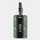 Personalised name luggage tag with golf ball design. Monogrammed front. Elegant style font.