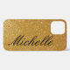 Personalised luxe faux gold glitter iPhone 12 case. Luxurious golden background texture with elegant script typography text. Chic design with fake glimmering shiny sparkles. Luxury style gift idea for stylish women and girls.