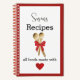 This recipe notebook features two wooden spoons with a red bow. Personalise the text with name and other text. A made-with-love recipe notebook would be a thoughtful housewarming gift for her.