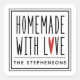 A personalised modern "made with love" sticker on a white background. Make it yours by adding your own name. A pretty finishing touch for all of your handmade gifts. Designed for you by Blackberry Boulevard.