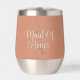 This beautiful Copper coloured tumbler has a script font for the words "Maid Of Honour" in cream on the front with a delicate watercolor wildflower sprig accent behind it. The Maid of Honour's name is on the back with Sagebrush accents below, adding a touch of Elegance to elevate that Rustic feel! Personalise with the easy to use template for your specific name. This design is also offered in a tall insulated Travel Tumbler at the Ivy Barn Studio. Both were designed to coordinate perfectly with my Rustic Boho Wildflowers Copper and Cream Wedding Suite Collection! This is unique and stylish and will be her "go-to" Wedding Cup to take with her when she goes shopping with you for your wedding dress, go out with all the girls, or getting together for any reason! *Don't forget to check out the rest of This Collection to get the ladies of the wedding party their version (perfect for the bridesmaid's gifts! ) to Celebrate in style together!! Great Mother of the Bride / Groom gift too!