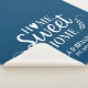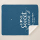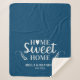 A cosy sherpa blanket featuring the words Home Sweet Home and your name and wedding date. Personalise this navy blue and white throw blanket for a beautiful wedding gift. Other colours available. Designed for you by Blackberry boulevard.