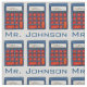 Fabric features an original marker illustration of a calculator. Simply personalise with the name of your favourite teacher!