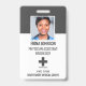 Personalise these vertical medical personnel badges with an employee photo and name, along with multiple custom text fields for hospital or healthcare facility name, unit or floor, title abbreviation, employee ID number, or valid through date, along with the medical centre logo. The title or role appears along the bottom in bold black lettering for easy identification. Customise with a barcode on the back if needed, along with return information or other details.