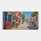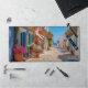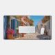 Bring the serenity of this view from a street into your workspace with this exquisite desk mat. Personalise it with a name printed on the lower right corner. This mat features a view of a street from a Mediterranean island street with its colourful doors and blinds and plants lovingly cared for by the content folk with a high-quality print from a high definition graphic. It provides a smooth and comfortable surface for your work for your laptop, keyboard and mouse. It can also transform your workbench with a stylish and elegant touch. Perfectly suited for all creators, artists, writers and anyone inspired.