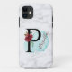 Personalised Merlot Navy Floral Letter P with Name Case-Mate iPhone Case