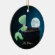 This holiday Christmas tree ornament features a beautiful Mermaid in green. She is sitting on a boat, at peace, under an enchanting full moon. Some graphics by HandMek.etsy.com. -