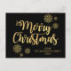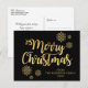 Personalised Merry Christmas Black Gold Glitter Holiday Postcard