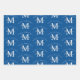 Personalised Merry Christmas Blue White Monogram Wrapping Paper Sheet
