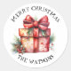Cute whimsical red and green watercolor Christmas gift personalised stickers.