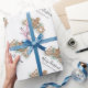This Christmas gift wrapping paper is decorated with watercolor Christmas cookies and foliage and says Merry Christmas.