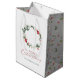 Make your holiday gifting extra special with this personalised Merry Christmas gift bag. Adorned with a beautiful watercolor wreath featuring winter berries and leaves, this gift bag can be customised with your family name or a unique holiday message. It's the perfect way to add a personal touch to your presents, making them stand out under the tree. Ideal for wrapping gifts for family, friends, or holiday parties, this festive bag ensures your presents are wrapped with style and care.