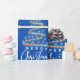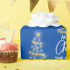 Lovely Personalised Merry Christmas Holiday tree in faux gold colour with star on blue background. Add your family name. Perfect for those gifts!
