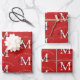 Personalised Merry Christmas Red Monogram Wrapping Paper Sheet