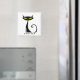 This personalised square magnet design features a retro mid century modern "atomic" black cat with big yellow eyes and a curly tail.