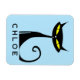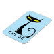 This personalised magnet design features a retro mid century modern "atomic" black cat with big yellow eyes and a curly tail.