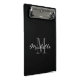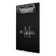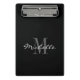 Personalised mini clipboard with elegant monogram. Custom Christmas or Birthday gift for teacher, co worker, sports coach, personal trainer, fitness instructor, friend, mum, dad, boss, corporate employee, office worker, hair stylist etc. Script typography design with name and initial letter. Black and white or custom colours. Double sided print. Handy for making notes, recipes, to do lists, work lists, wedding plans, keeping sport score and more.
