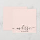 A minimalist pink calligraphy script name note card design with black and white accents. Customise the name on the note card and make it your own. These note cards are perfect for personalised gifts or personal stationery.