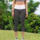 Personalised Minimalist Chic Dark Grey White Yoga Capri Leggings