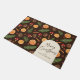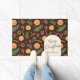 Personalised Modern Botanical Merry Christmas Doormat. Design features a seamless pattern of winter botanical elements of pinecones, citrus, branches, cinnamon, berries, and star anise that can be scaled up or down. Background colours can be edited. Personalise the template with your name or custom text. © Kimbellished, LLC