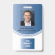 Professional business badge for your medical staff, business staff or employees. Personalise with name, employee id, business logo, bar code or other information. Modern business blue coloured modern design. Information on back and front of this vertical badge.