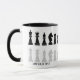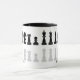 Classic black and white chess mug for chess lovers, featuring chess figures in a geometric pattern. Modern chess pieces design
