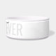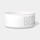 Black and white dog bowl with grey "BEST DOG EVER" and your dog's name customised in a chic and elegant calligraphy script font text overlay. Enter any personalised text you like for the background and top layer of text to create your own personalised modern and minimal and fun ceramic pet food or water bowl. See our collection of coordinating bowls and get a set!