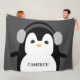 Personalised Modern Cute Black White Penguin Fleece Blanket