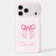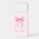Add a chic and feminine touch to your phone with this Personalised Modern Elegant Pink Bow iPhone 17 Pro Max Case. Designed with a trendy watercolor bow and beautiful hand-drawn script, this stylish case sits over a soft blush pink background for a look that is both modern and elegant.