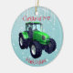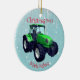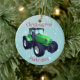 A farmer's favourite green tractor on a personalised "Christmas 20XX" ornament.