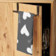 The product design features two white doves roost together and look up towards a light blue heart. White doves are symbols of love, luck, peace, and prosperity. This simple birds illustration makes a cute modern and unique kitchen towel with personalised text - Gift idea for wedding, bridal shower, anniversary, or any other romantic occasions.