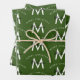 Personalised Modern Merry Christmas Green Monogram Wrapping Paper Sheet