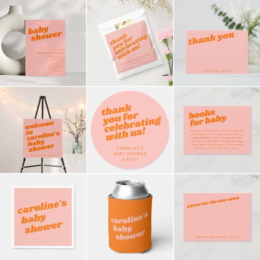 Modern Cute Pastel Pink Orange Retro Baby ShowerDesigned by Opal Ellery