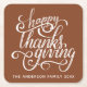 Personalised Modern Script Happy Thanksgiving Square Paper Coaster