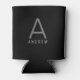 Personalised Name and Initial Letter Can Cooler with a Custom Monogram in a trendy modern and minimal classic sans serif font for a simple but sophisticated and masculine look. Shown in grey and black and white, the text colours and fonts can be changed, and a bottle cooler option is available as well.