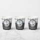 The design features a pair of ice skates over a snowflake crest and an off-white tartan pattern background. This elegant winter sports design serves as cute modern and unique paper cups with personalised text for ice skating | figure skating theme birthday, Christmas, event party, or any other special occasions.