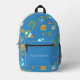 Add your childs name or initials to this beautiful back pack featuring rockets and boho rainbows on a blue background, ideal for school or sports club. if you have any issues with this design please contact me janine by my message button in my store willow spring studio and ill be happy to help.