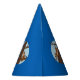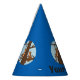 Customisable Party Hat Illustration with a brown monkey climbing a tree, and another one sitting in the tree, with custom text template for your name or message, illustration by MaxiHarmony / Radka Kavalcova
