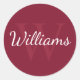 Personalised Monogram and Name Burgundy Red Classic Round Sticker