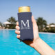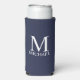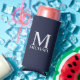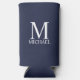 features personalised monogram and name in white classic serif font style on navy blue background.