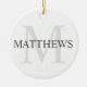 features personalised name in grey and monogram in light grey as background, in classic serif font style,