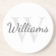 features personalised name in grey script font style and monogram in light grey serif font style as background, on white background.