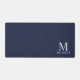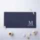 features personalised monogram and name in white classic serif font style on navy blue background.